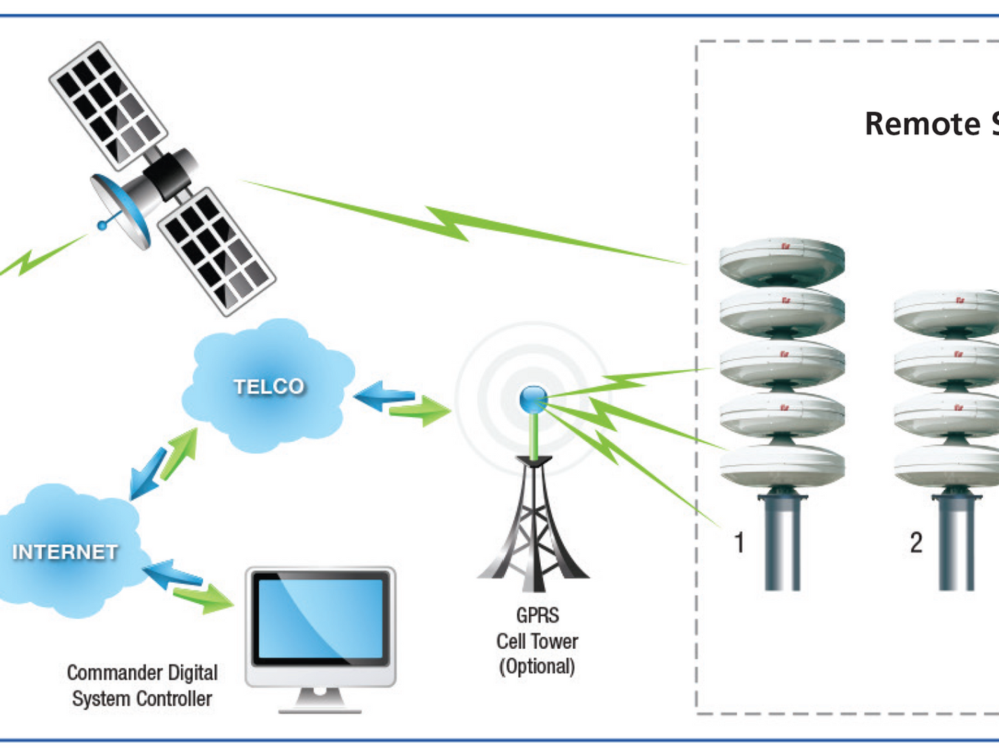 SATELITAL – Utilizando la red de satélites geoestacionarios de Inmarsat, la red Isat Data Pro permite monitorear y controlar sirenas mecánicas y electrónicas de Federal Signal en ubicaciones remotas. El terminal satelital remoto es un diseño resistente de formato pequeño que requiere montaje exterior. Federal Signal ofrece planes de facturación flexibles con bajos costos mensuales. La disponibilidad de la red es del 99.995%, y el Centro de Operaciones de Red (NOC) 24/7 garantiza un servicio continuo y fiable, necesario para este tipo de servicios críticos.